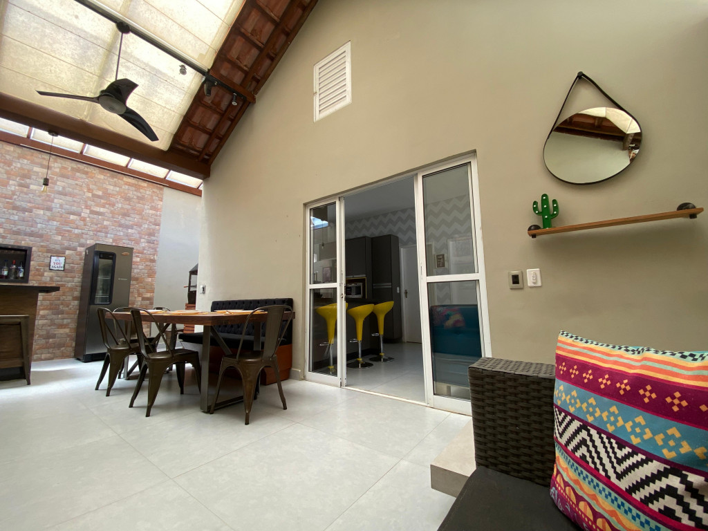 Toda a area externa é coberta com policarbonato transparente bela área gourmet com churrasqueira e um bar, sala ampla, cozinha , condomínio com valor de 100 reais , o imóvel possui 85 metros quadrados , IPTU 1.790 anual , valor do imóvel 570 mil . Venda porteira fechada .