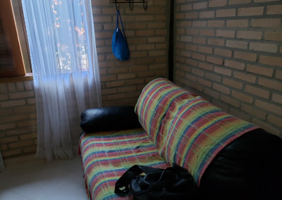 Sofá cama na sala e nos dois quartos de hóspedes.